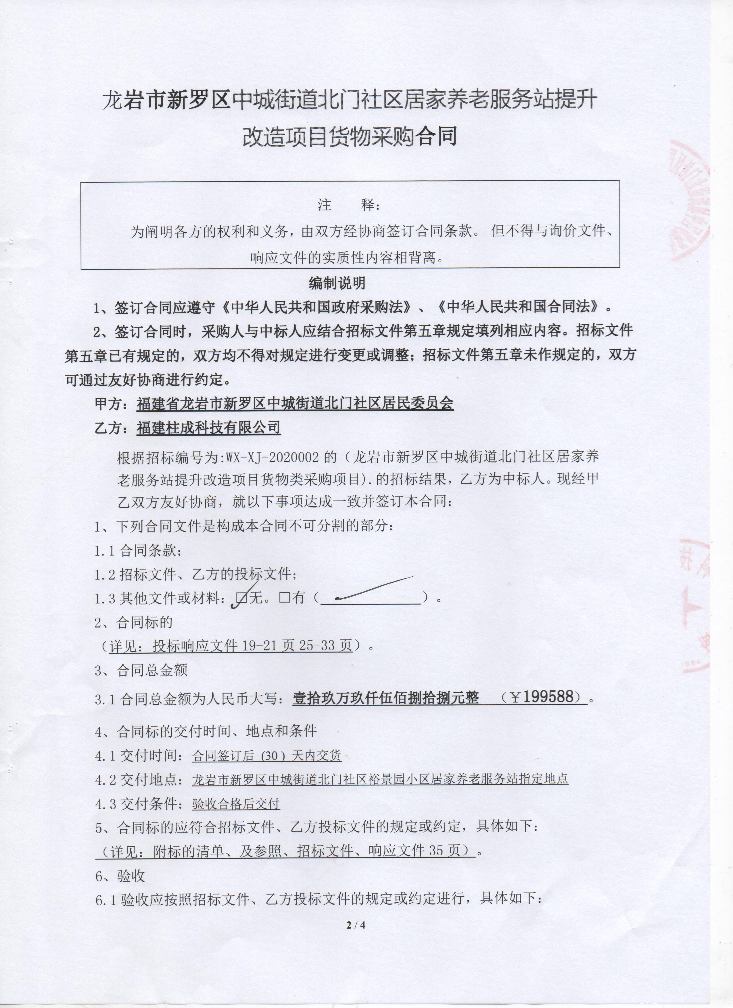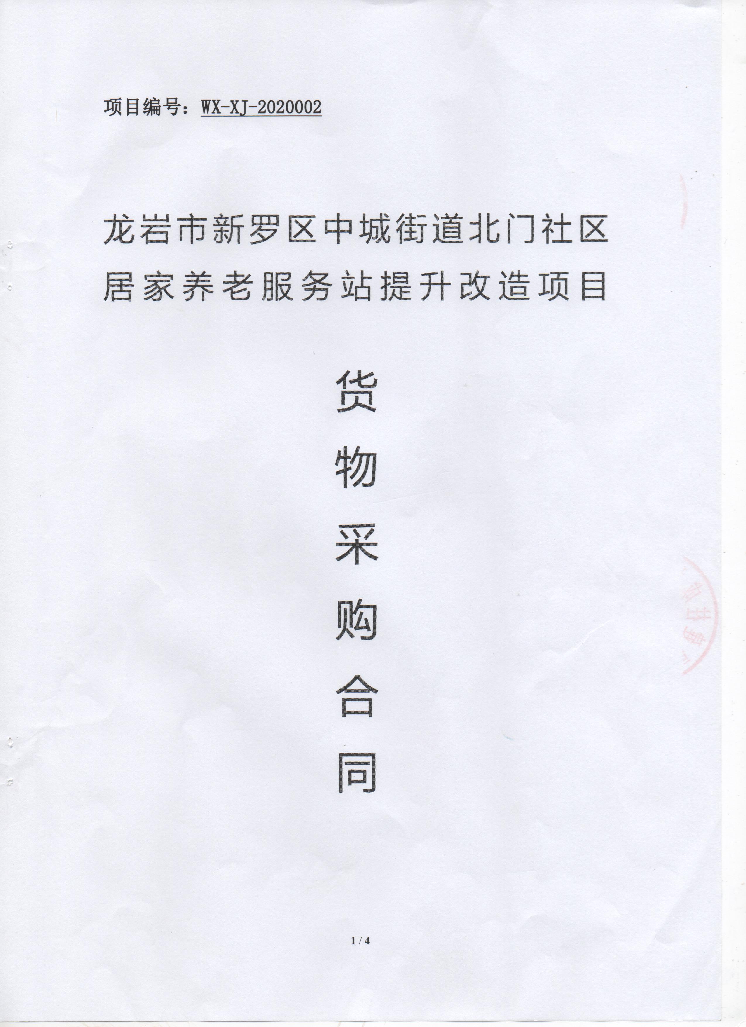 龙岩市新罗区中城街道北门社区居家养老服务站提升改造项目货物类采购项目合同公告